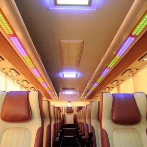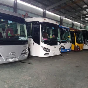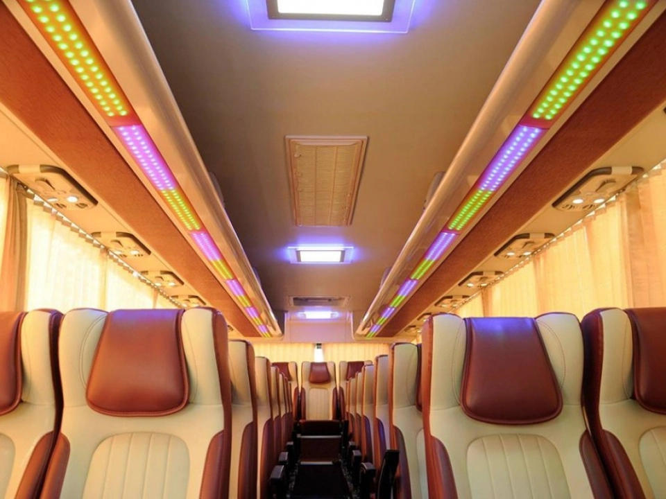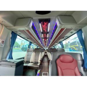Dàn xe 29 chỗ chất lượng cao từ các hãng uy tín như Thaco, Hyundai County, Samco, được bảo dưỡng định kỳ, nội thất hiện đại, máy lạnh mát sâu, ghế ngồi êm ái.